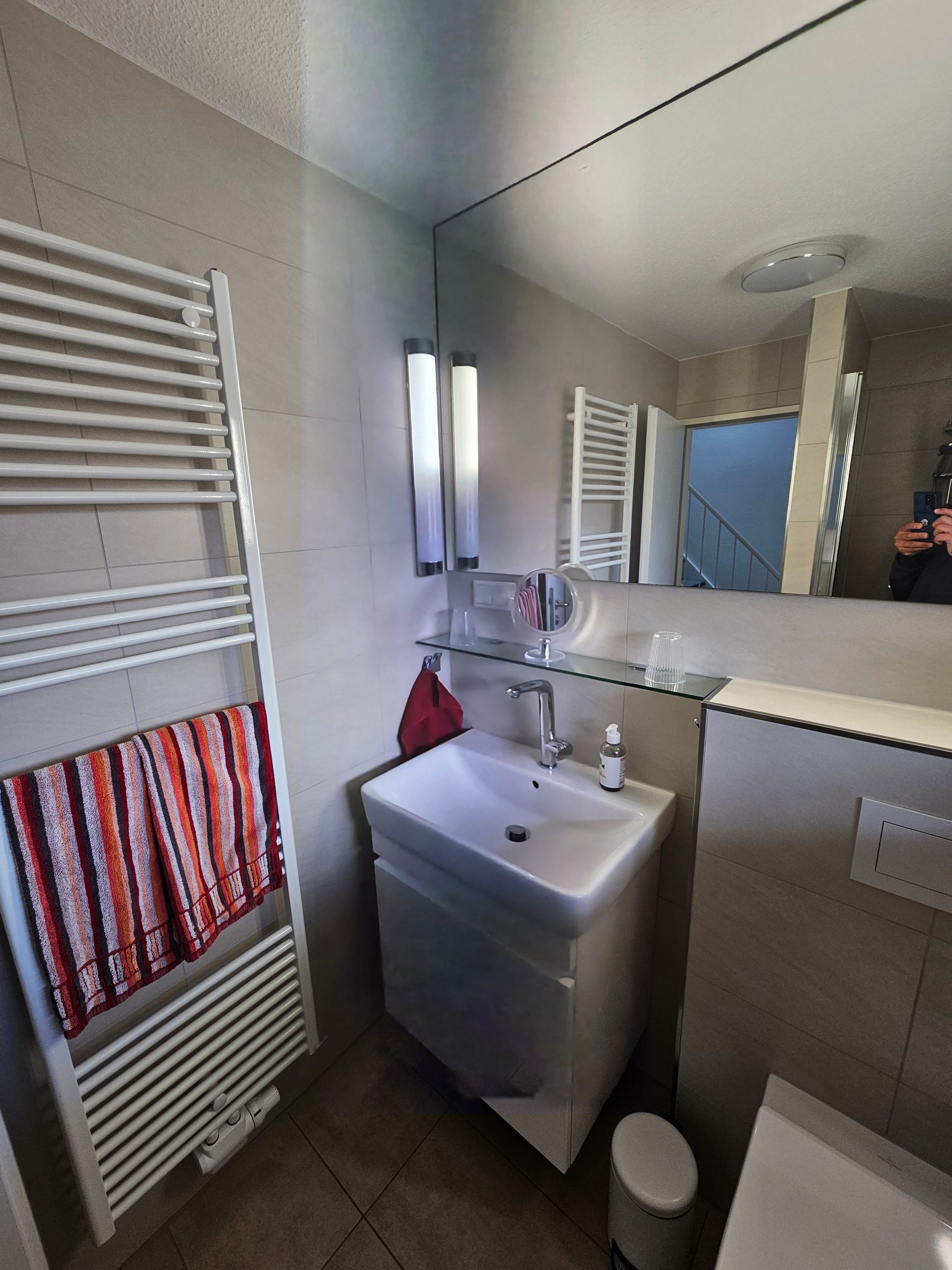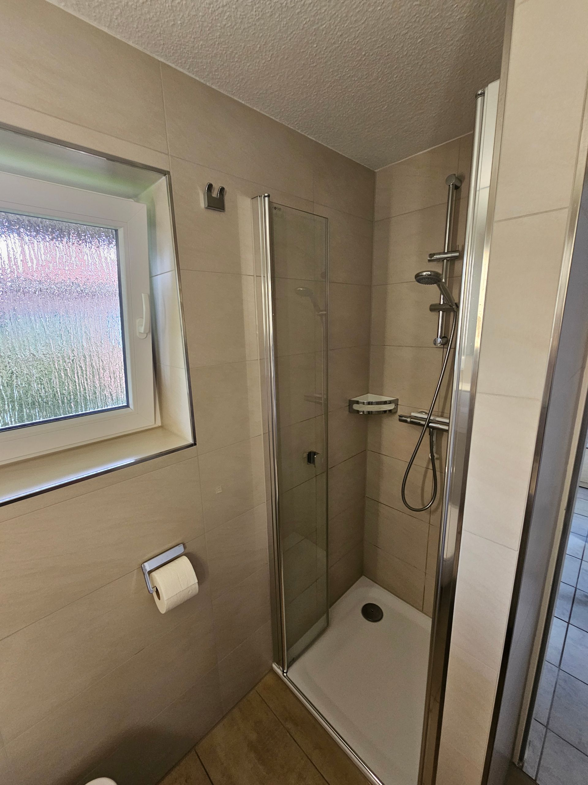 Die Ferienwohnung verfügt über einen Wohn- und Essbereich, eine separate, voll ausgestattete Küche, ein Schlafzimmer und ein Duschbad mit WC. Durch die Treppe zur Wohnung und die Türbreite des Badezimmer (50cm) ist die Wohnung leider nicht Rollstuhl geeignet .